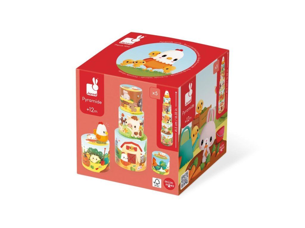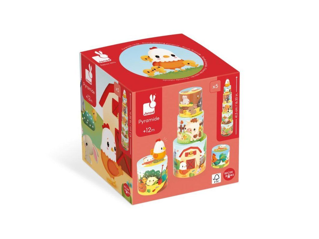 Táto hračka sa skladá z 5 kartónových blokov a drevenej figúrky sliepky múmie. Keď vyleziete na pyramídu, môže vaše dieťa pomôcť sliepke nájsť kuriatka ukryté na každej ilustrácii.
