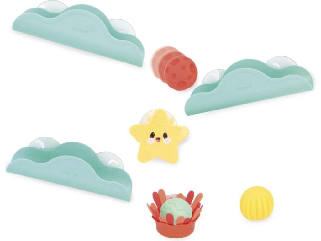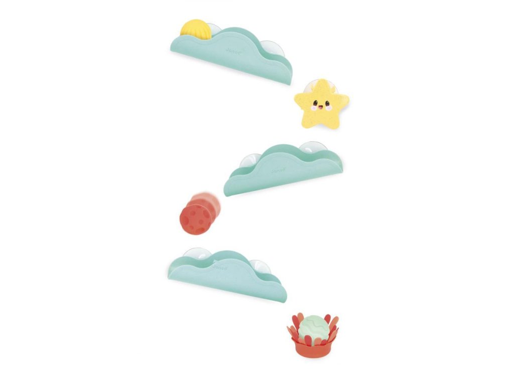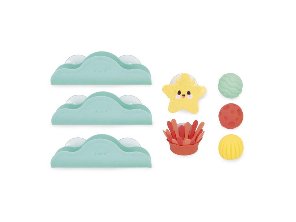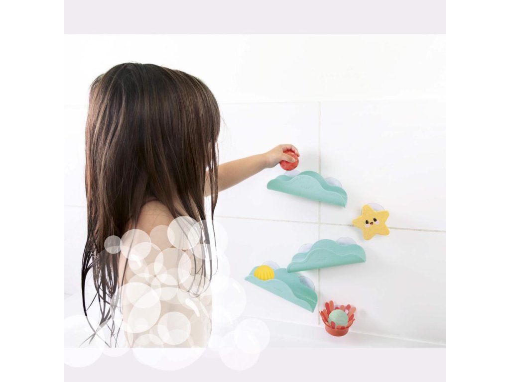 S týmto morským kúpeľným okruhom sa deti od 12 mesiacov a viac zabavia pri kúpaní. Táto hračka do kúpeľa, ktorá pozostáva z 3 šmykľaviek, 3 senzorických loptičiek, 1 rotujúcej hviezdice a 1 sasanky, sa pripevňuje na kúpeľňové dlaždice pomocou prísaviek.