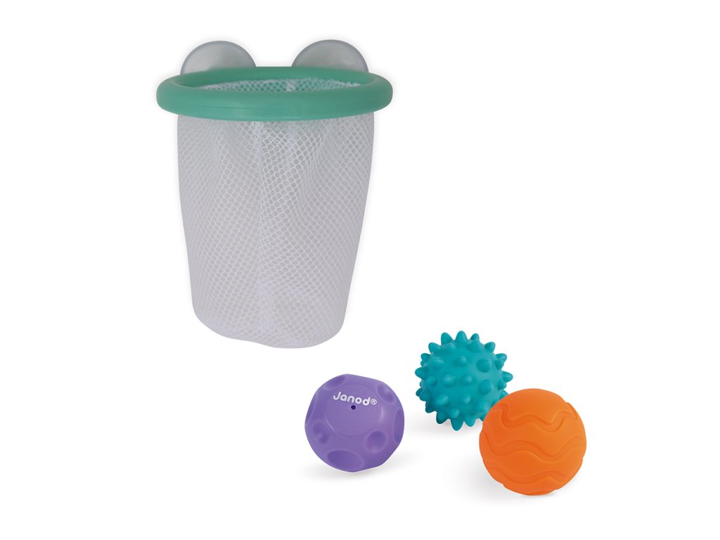 Hračka do vody basketbalový kôš s loptičkami 3 ks Janod séria Bath Toys.Vodný basketbal poskytne Vašej ratolesti pri kúpaní skvelú zábavu.