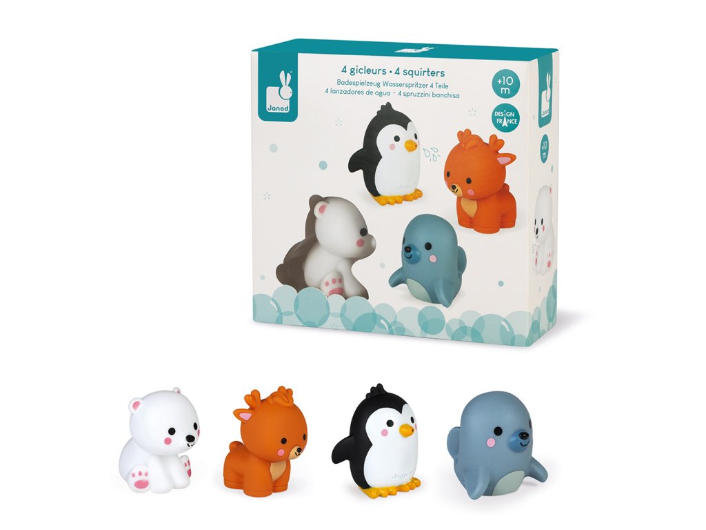Striekajúca hračka do vody Polárne zvieratká 4 ks Janod séria Bath toys.