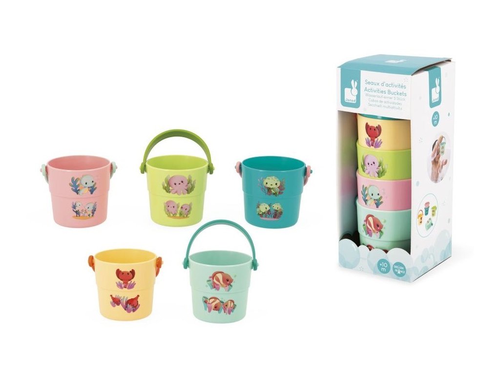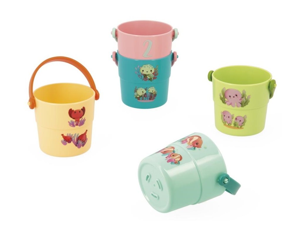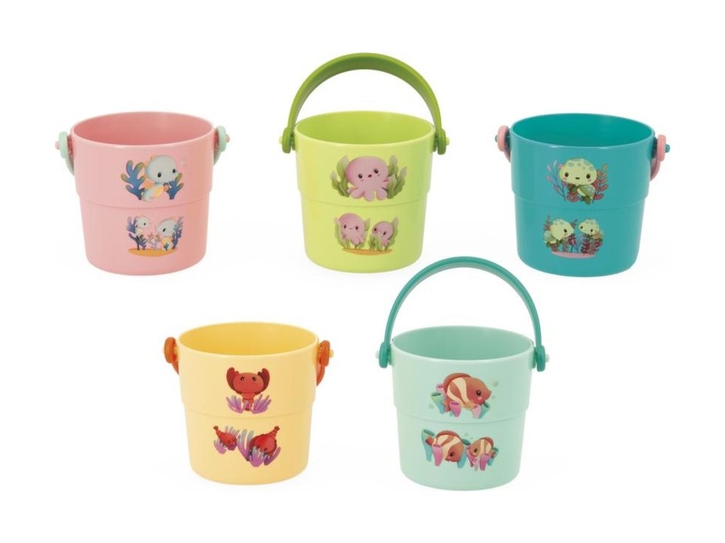 Týchto 5 farebných vedierok pomáha malým deťom objavovať mláďatká morských živočíchov! Ľahko sa zdvíhajú a sú navrhnuté tak, aby padli do ručičiek malých detí a predovšetkým potešia vaše bábätká pri povinnom večernom kúpaní.
