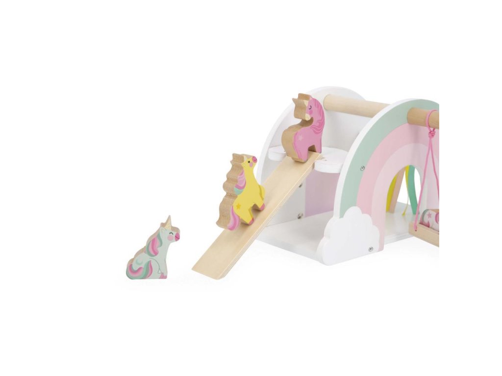 Vymyslite vlastný príbeh so 4 jednorožcami a ich šmykľavkou. Odvážnejší sa môžu hrať aj na hojdačke!