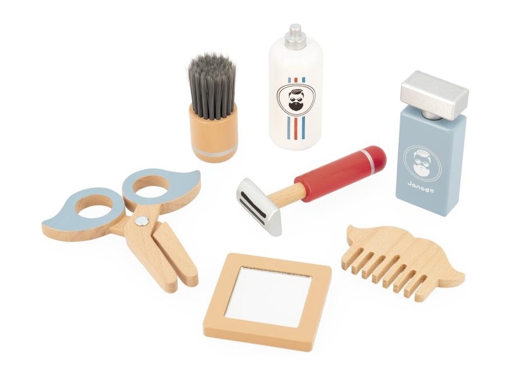Balenie obsahuje 7 drevených doplnkov: kefa na holenie a pena na holenie na tvár, holiaci strojček, hrebeň na vlasy, nožnice na konečnú úpravu, zrkadlo na obdivovanie a kolínska na konečnú úpravu!