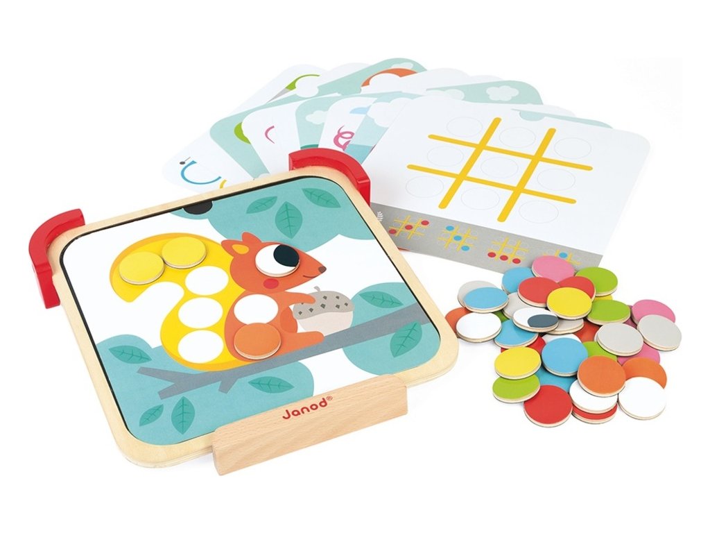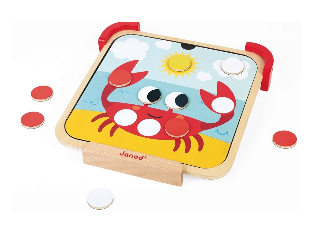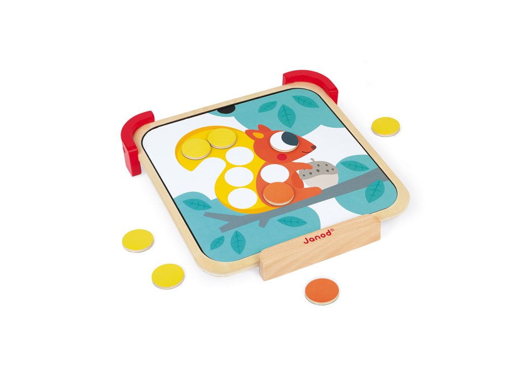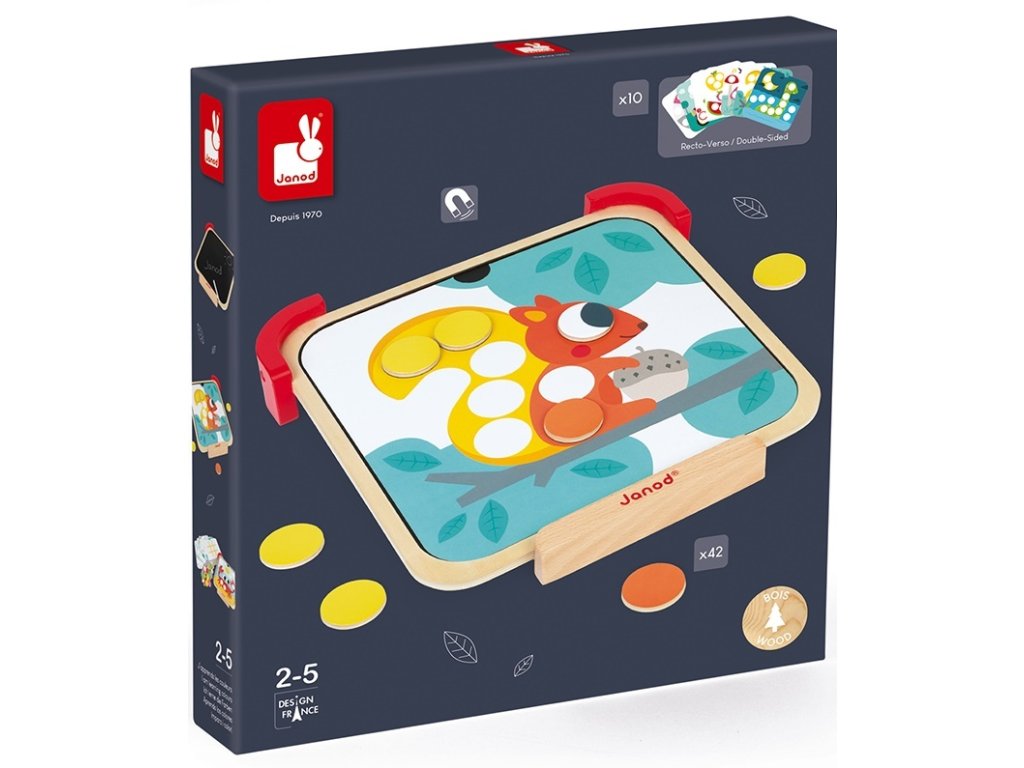 Drevená magnetická skladačka a vkladačka, vďaka ktorej sa Vaše dieťa naučí farby a to doplnením kresby pomocou viacfarebných magnetických čipov!