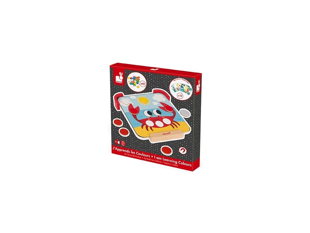 Drevená magnetická hračka Učím sa farby s magnetkami a tabuľkou na kreslenie kriedami.
