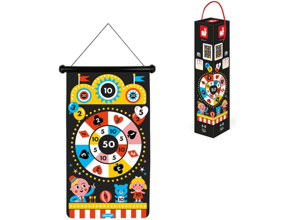 Zdokonateľte sa v hádzaní šípok a získajte čo najviac bodov s presným cieľom! Obojstranný magnetický terč je možné zavesiť na stenu, kľučku alebo strom a 6 magnetických šípok bez hrotov, ktoré zabránia zraneniu a umožnia si tak hru zahrať už od ranného veku.