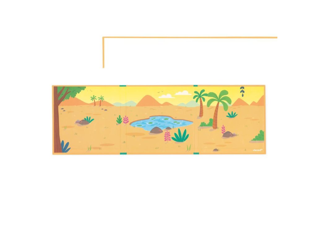 Knihu otvorte a nájdete v nej veľké magnetické pozadie a 30 magnetiek zobrazujúcich dinosaurov a dekorácie, ktoré sú ideálne na doplnenie scény akéhokoľvek príbehu!