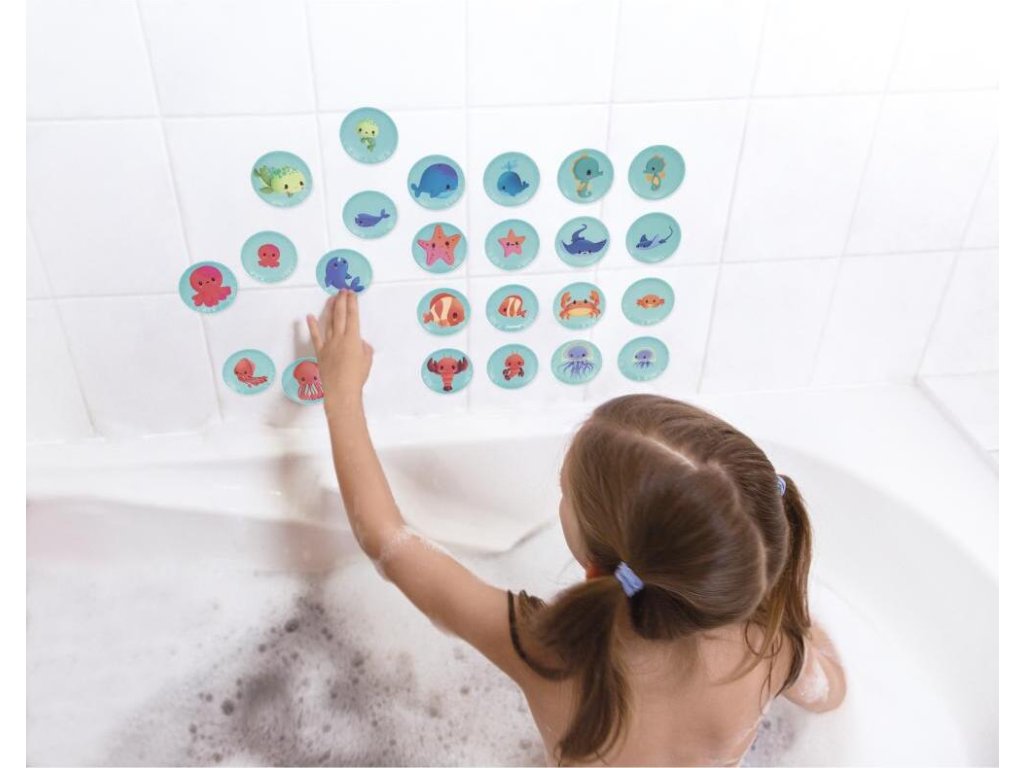 Týchto 24 mäkkých kúskov sa dokonale hodí na kúpanie, akonáhle sú mokré, vznášajú sa na hladine a dajú sa prilepiť na kachličky. Ideálne na trávenie času s rodinou pri zábave!
