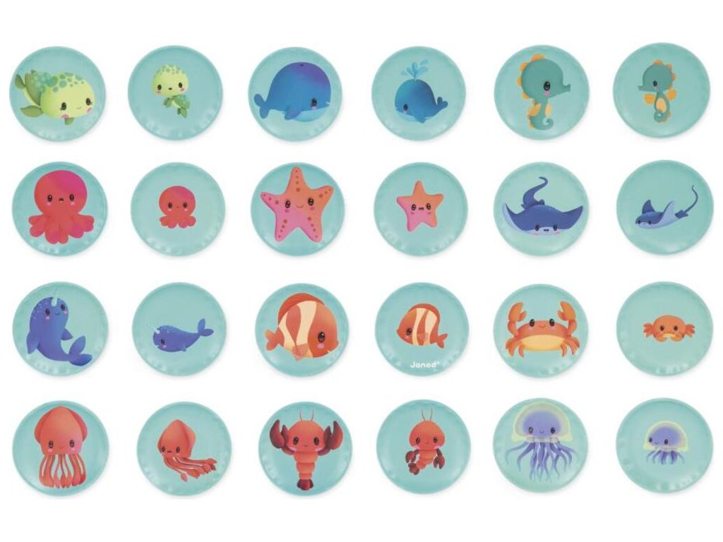 Pomôžte svojmu dieťaťu nájsť všetky zvieratká! Toto mäkké pexeso do vane obsahuje 12 párov zvieratiek. Cieľom hry je spojiť otca alebo matku s ich dieťaťom.