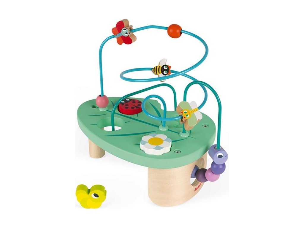 Má tiež 3 dieliky (kvetina, húsenica, lienka), ktoré zapadajú do vrchnej časti a pomáhajú rozvíjať obratnosť a zručnosť.
