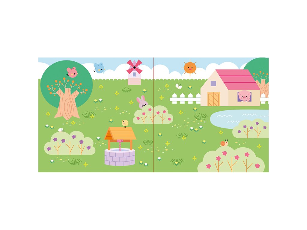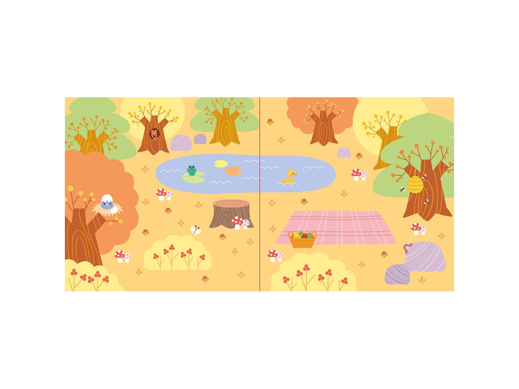 Obsahuje 1 obojstrannú rozkladaciu tabuľu s obrázkami. Na jednej strane zobrazuje ovocný sad a farmu, na druhej strane rybník a les.