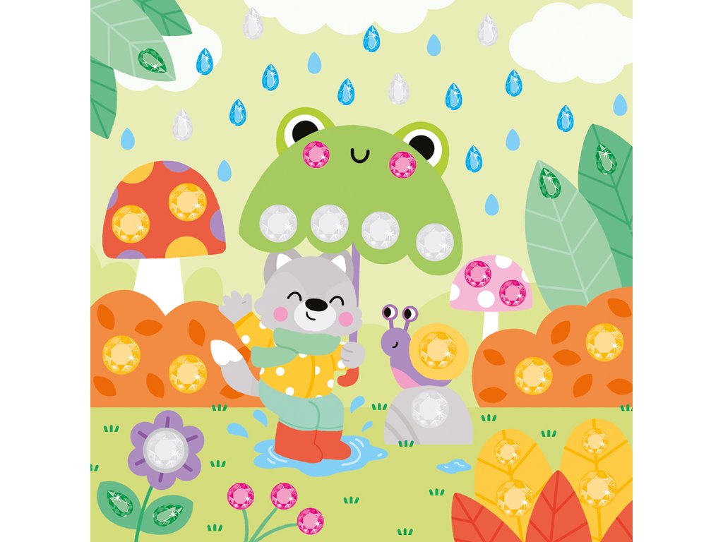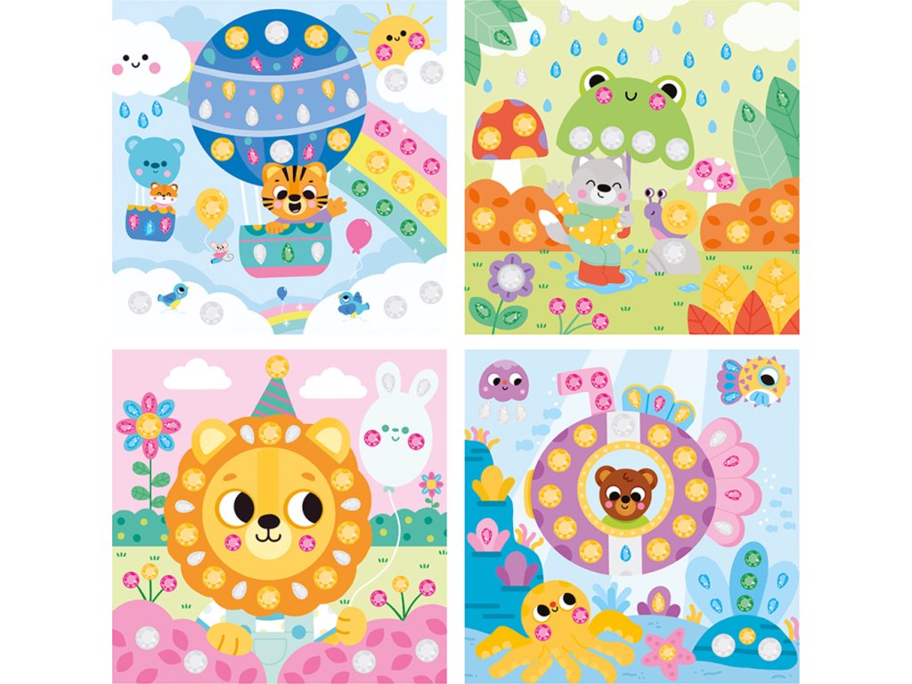 Táto kreatívna sada obsahuje 4 obrázky na doplnenie veľkých kamienkových nálepiek, s ktorými sa ľahko manipuluje.
