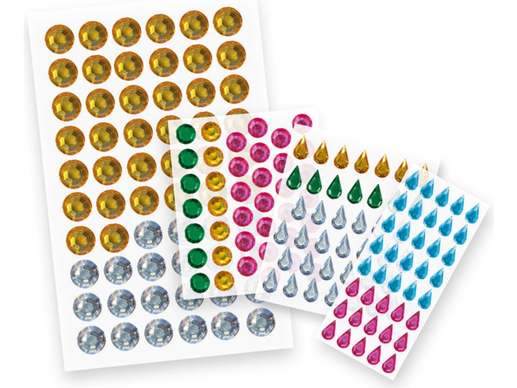 180 veľkých samolepiacich kamienkov (2 tvary, 2 veľkosti, 5 farieb).