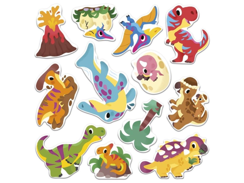 Samolepky špeciálne navrhnuté pre malých fanúšikov dinosaurov! V tejto kreatívnej súprave pre deti od 2 rokov sú stredobodom záujmu premiestniteľné nálepky. Nekonečné lepenie a šúpanie je ideálne, keď si drobci rozvíjajú jemnú motoriku a začínajú sa po prvýkrát učiť tvorivé činnosti!