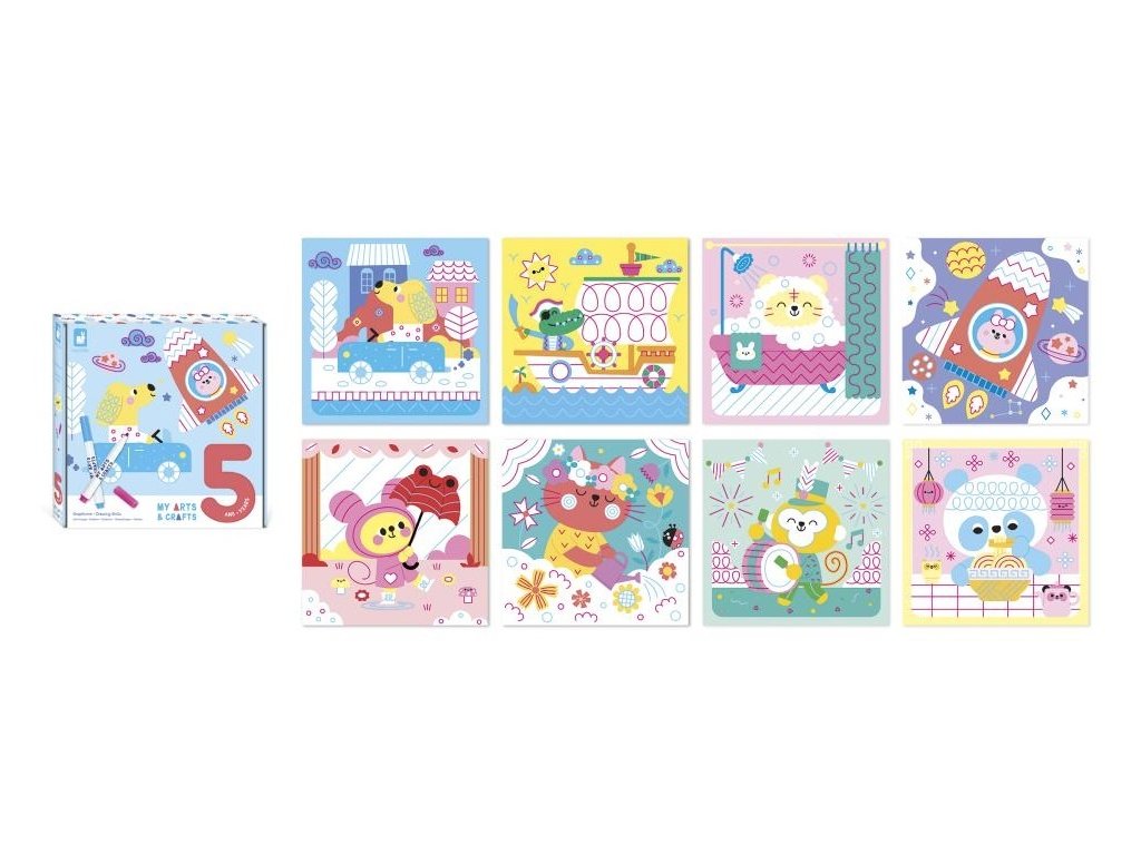 Táto kreatívna súprava je súčasťou radu My Arts & Crafts, ktorý sa môže pochváliť mimoriadne roztomilými zvieratkami v pastelových farbách a predstavuje malým deťom prvé praktické remeselné činnosti.