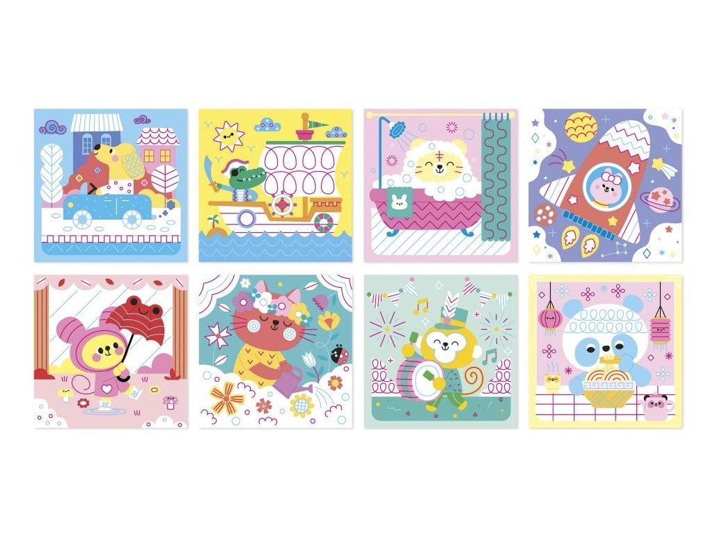 A ak sa vám podarí zdobiť, je to ešte lepšie! Táto súprava pre deti od 5 rokov obsahuje 4 obojstranné stierateľné dosky, ktoré zobrazujú roztomilé a vtipné postavičky zvieratiek.