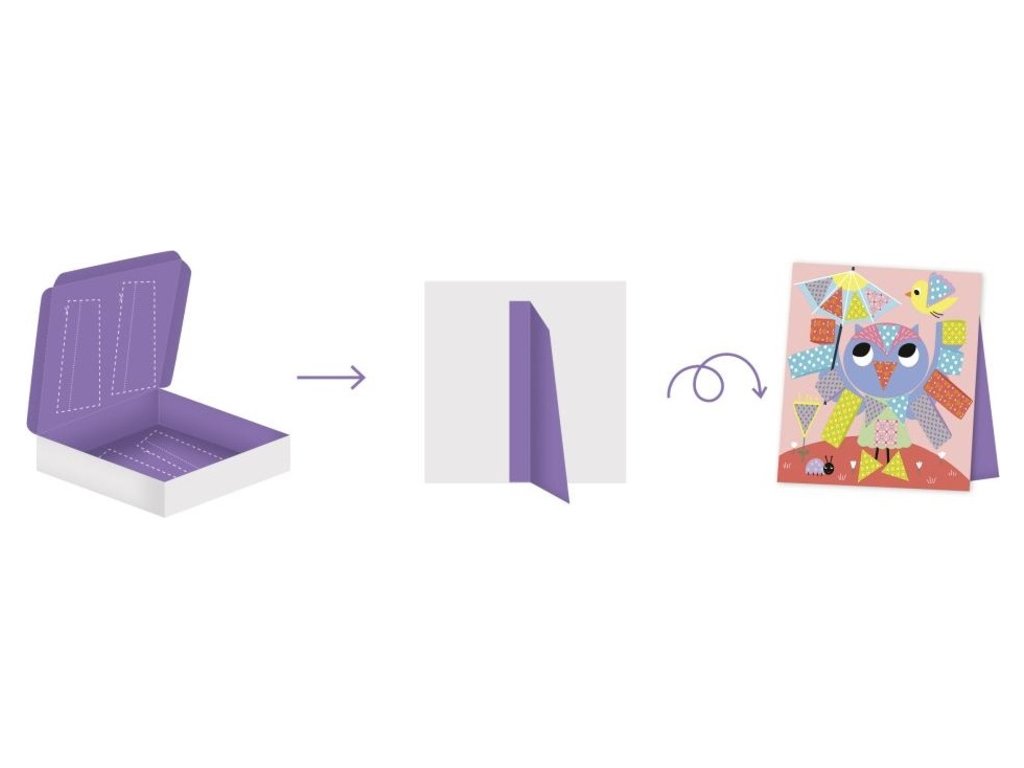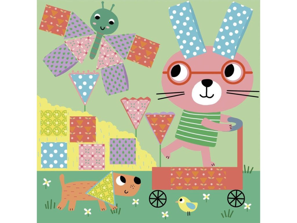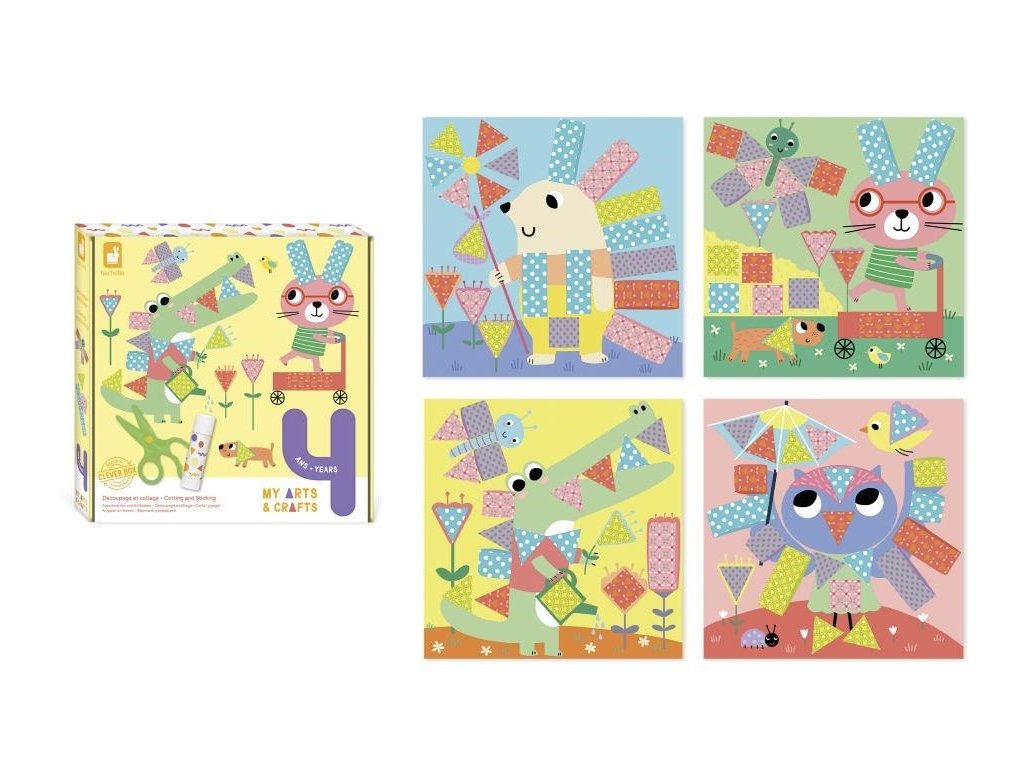Táto remeselná súprava obsahuje všetko, čo budú najmenší potrebovať na dokončenie 4 obrázkov rozrezaním vzorovaných papierových prvkov a ich prilepením na správne miesto.