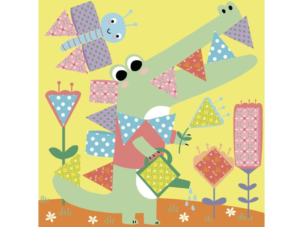 Úlohou tejto kreatívnej sady je vystrihnúť a nalepiť vzorované papieriky na pozadia so zvieratami a dokončiť tak obrázok. Vaše dieťa sa zabaví dopĺňaním farebných obrázkov na tému zvieratká: ježko, králik či krokodíl. Nožnice sú bezpečné pre deti, strihajú iba papier!