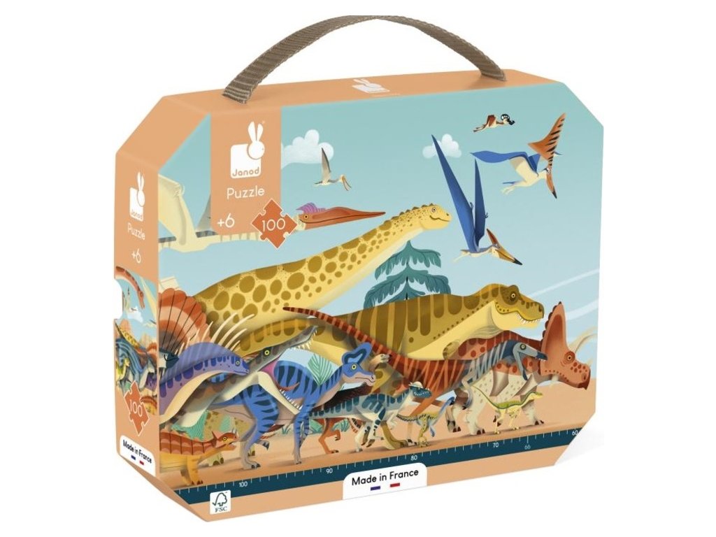Janod Panoramatické puzzle v kufríku Dinosaury Dino 100 ks