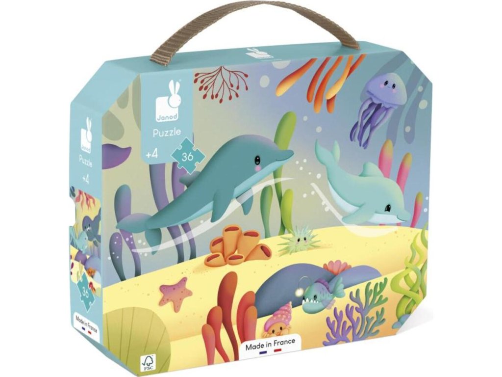 Janod Panoramatické puzzle v kufríku Morský svet 36 ks