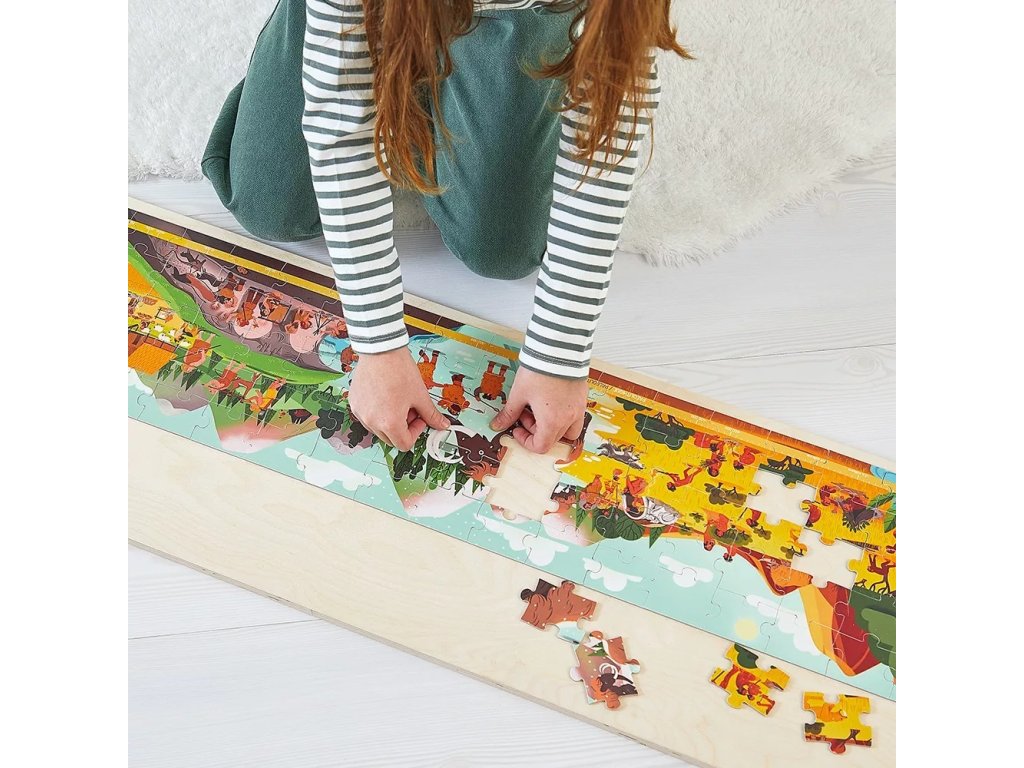 Čaká ťa cesta časom! Ponorte sa do obdobia neolitu s týmto 100-dielnym ilustrovaným vlysom s tematikou prehistórie, ktorý je vhodný pre deti od 6 rokov. Toto panoramatické puzzle s rozmermi 100 x 20 cm úplne vtiahne deti do fascinujúceho obdobia paleolitu.