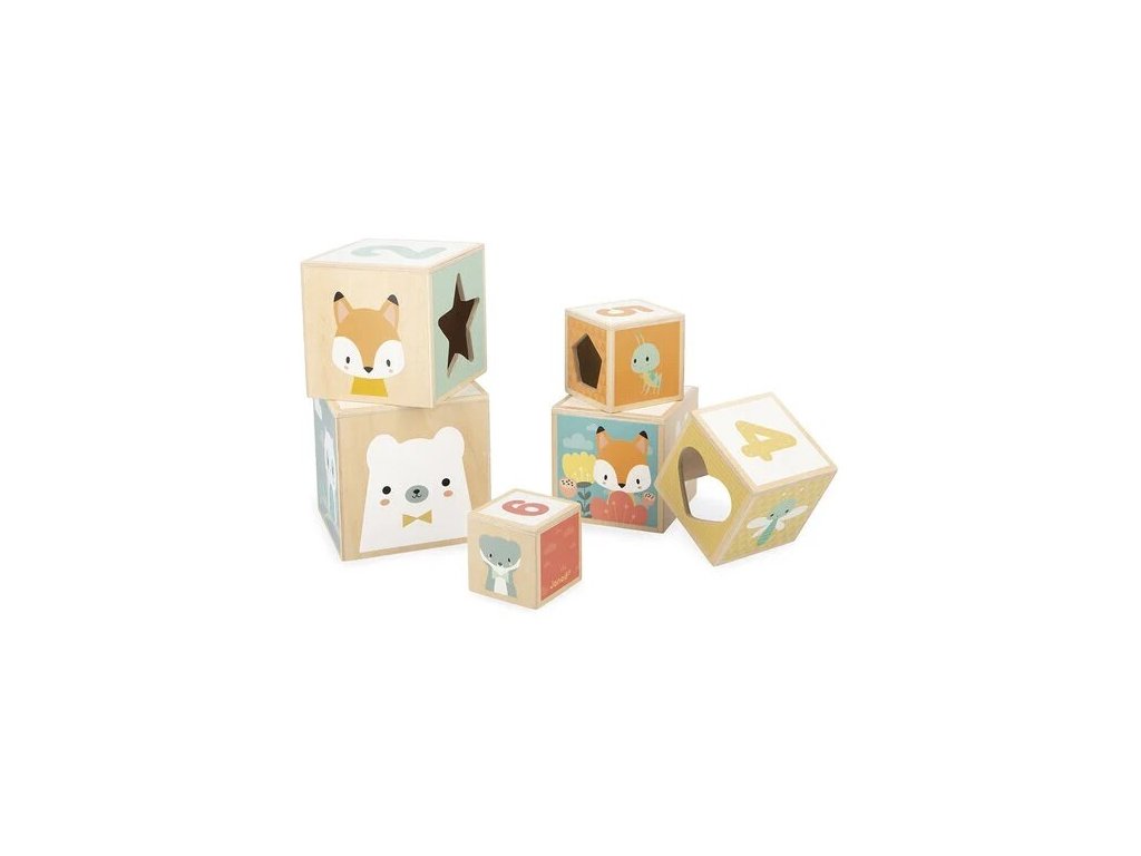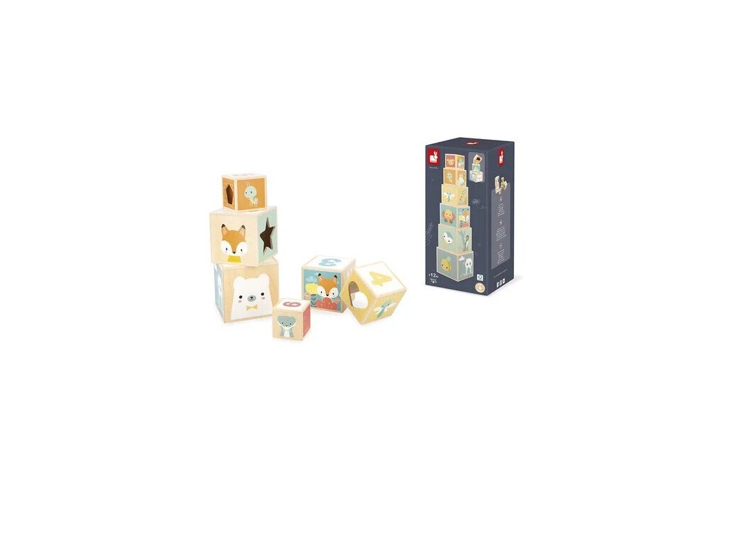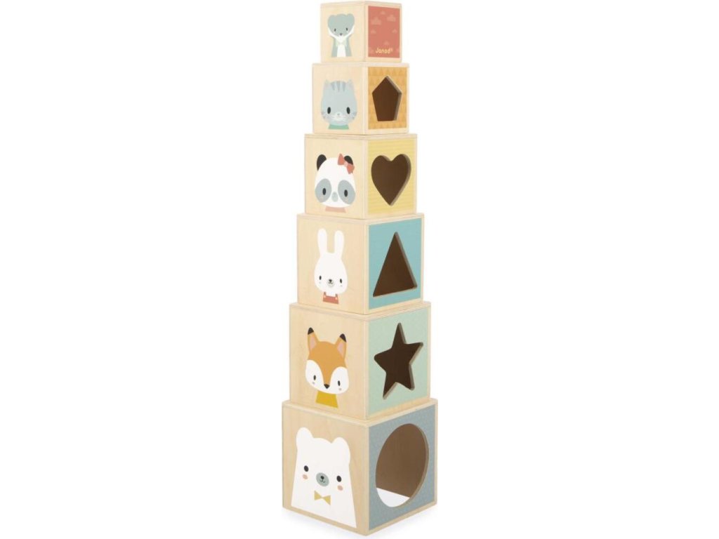 Janod Pure Skladacia drevená pyramída Zvieratká 6 ks