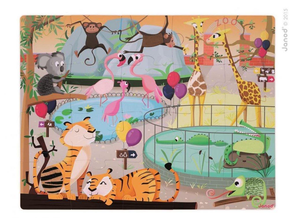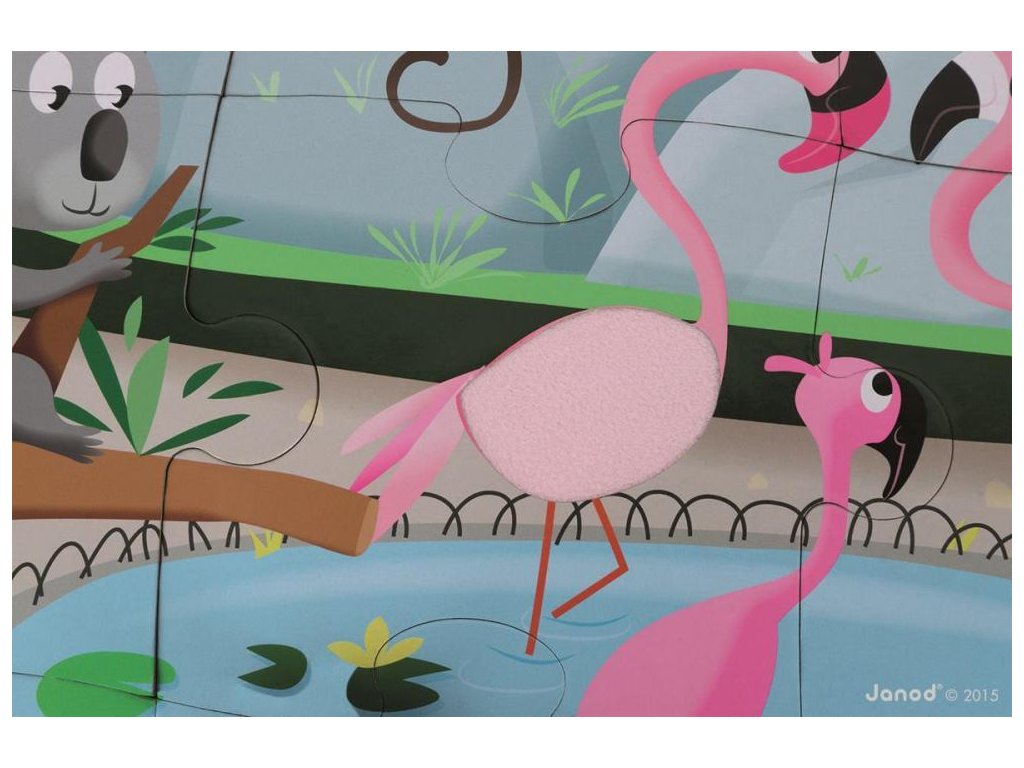 Janod Puzzle dotykové Deň v ZOO s textúrou 20 ks senzorické