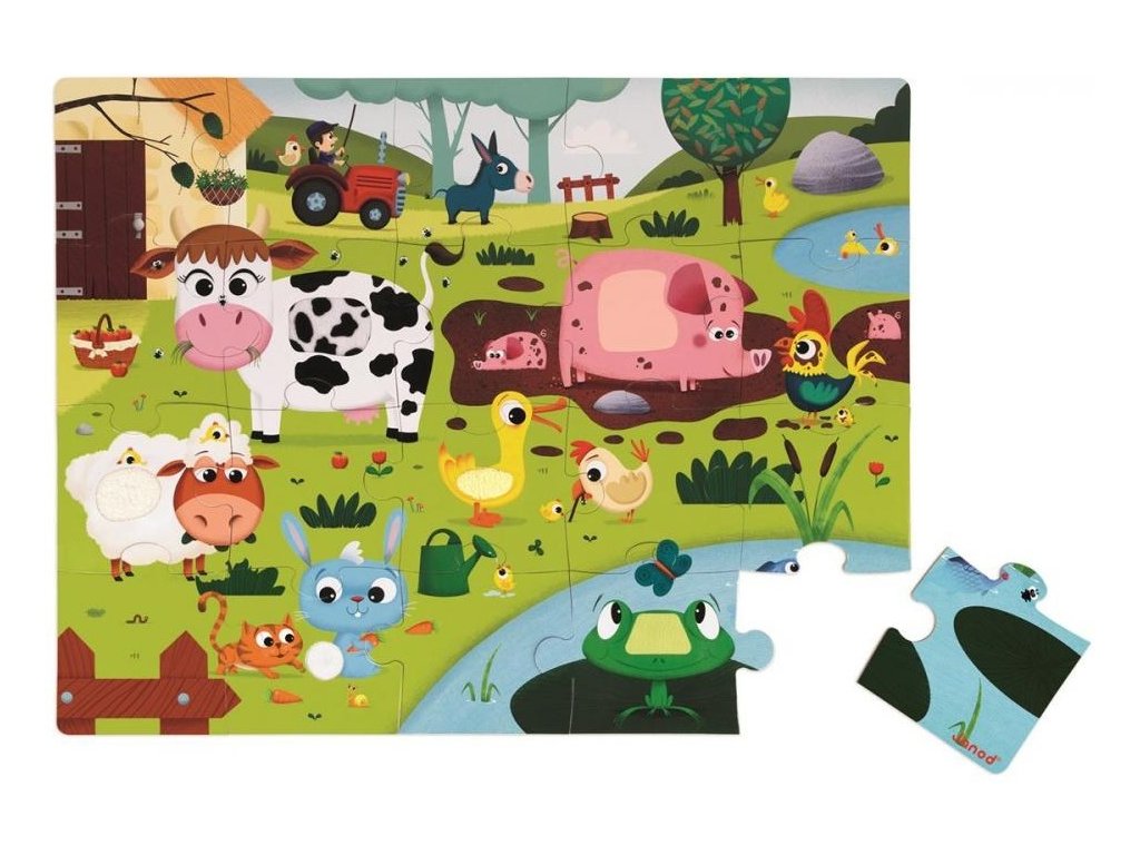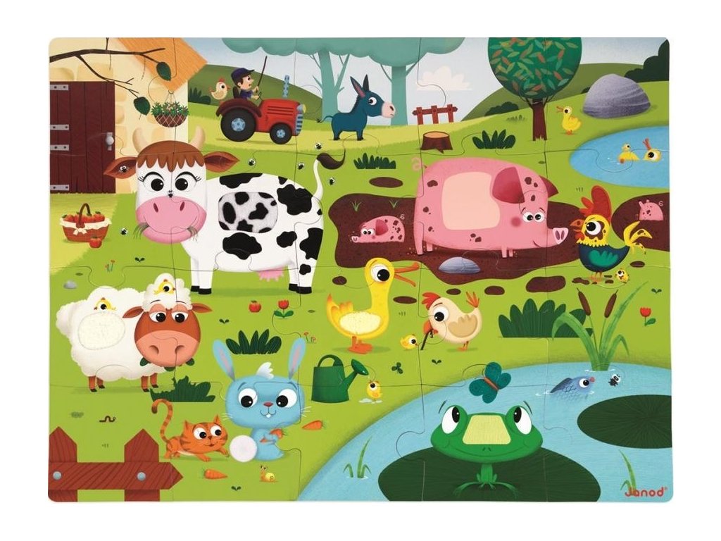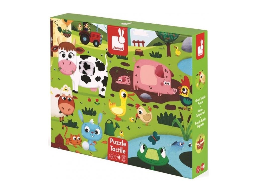Detské puzzle Tactile Janod sú náučné puzzle pre najmenšie deti od 3 do 6 rokov. Puzzle má 20 dielikov a motív zvieratiek na farme. Veselé farby a krásny motív poteší všetky detičky.