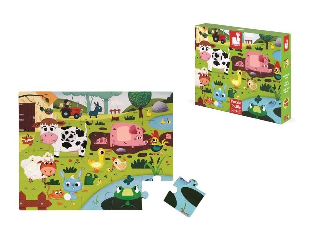 Janod Puzzle dotykové Zvieratká na farme s textúrou 20 ks senzorické