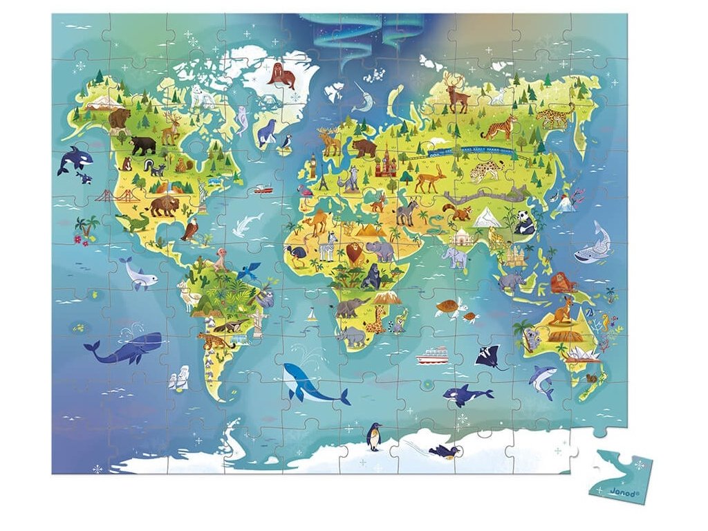 Od New Yorku po Hong Kong, cestujte po Zemi, aby ste sa stretli so zvieratami a zázrakmi našej planéty. Toto vynikajúce 100-dielne kartónové puzzle s množstvom detailov je ideálne pre mladých fanúšikov geografie a dobrodružstva. S týmto krásnym 100-dielnym kartónovým puzzle bude vaše dieťa rozvíjať svoju pamäť a zručnosť.