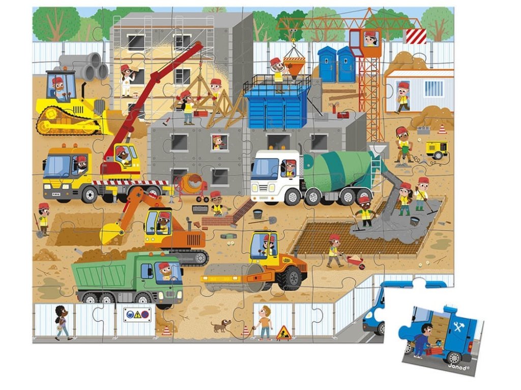 Pozor na žeriav nad hlavou! Všetci tvrdo pracujú na dokončení stavby domu, vaše dieťa je projektový manažér a je zodpovedné za konečné úpravy! Toto krásne 36-dielne kartónové puzzle s množstvom detailov je ideálne na objavovanie povolaní v stavbárskom priemysle.