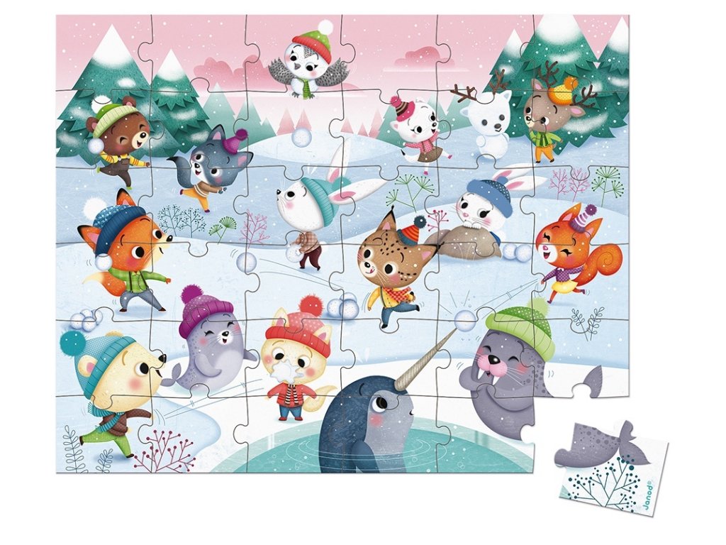 Nádherné puzzle s motívom Party na snehu. Tieto kartónové puzzle s 36 ks dielikmi určite očaria a zabavia nejedno malé dieťa.