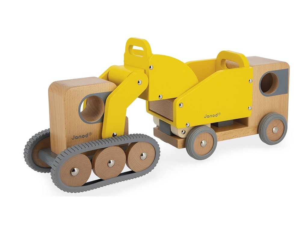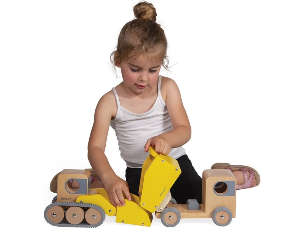 S dreveným bagrom a sklápačom si vaše ratolesti vychutnajú veľa zábavy. Chce byť váš malý nezbedník stavbárom? Chce bágrovať všade jamy a stavať domy a cesty?