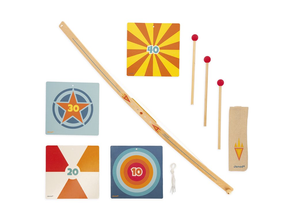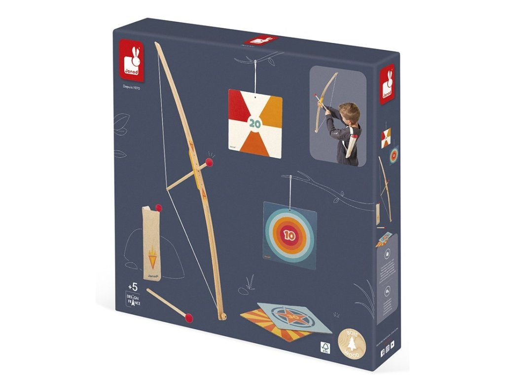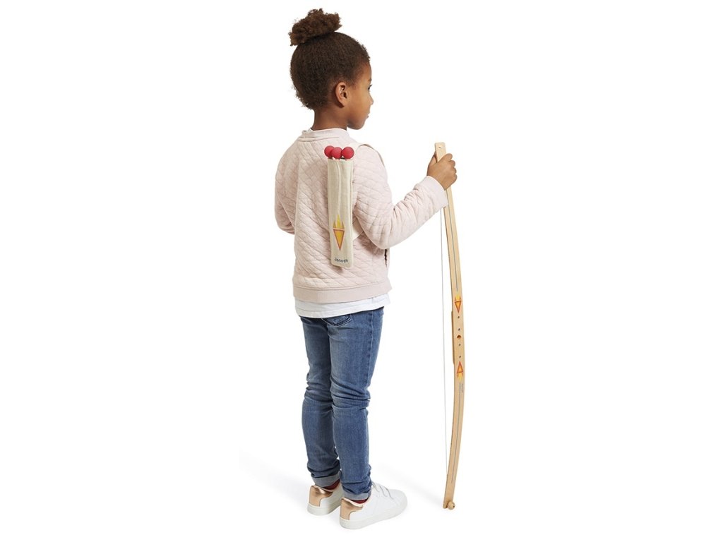 Presné oko! Vaše dieťa sa stane malým šampiónom v lukostreľbe! Trénujte pomocou tohto dreveného luku s 3 šípmi, ktoré sú zakončené penou pre vyššiu bezpečnosť a 4 kartónovými terčmi. Šípy sú uložené v peknom látkovom obale vybavenom popruhom na nosenie na ramene.