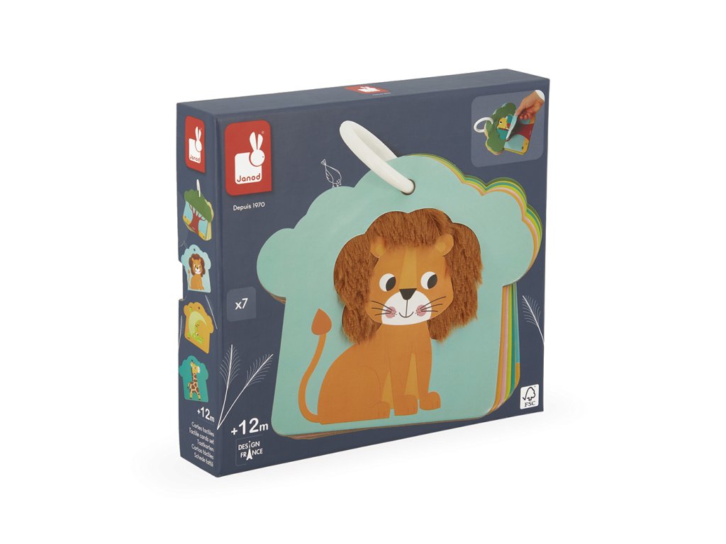 Zoznámte sa so zvieratami zo savany! Keď nadvihnú listy baobabu, vaše dieťa odhalí jednu zo 6 textúrovaných kariet so zvieratkom, ktoré žije na savane. Kto má napríklad jemnejšiu pokožku? Je to krokodíl alebo žirafa?