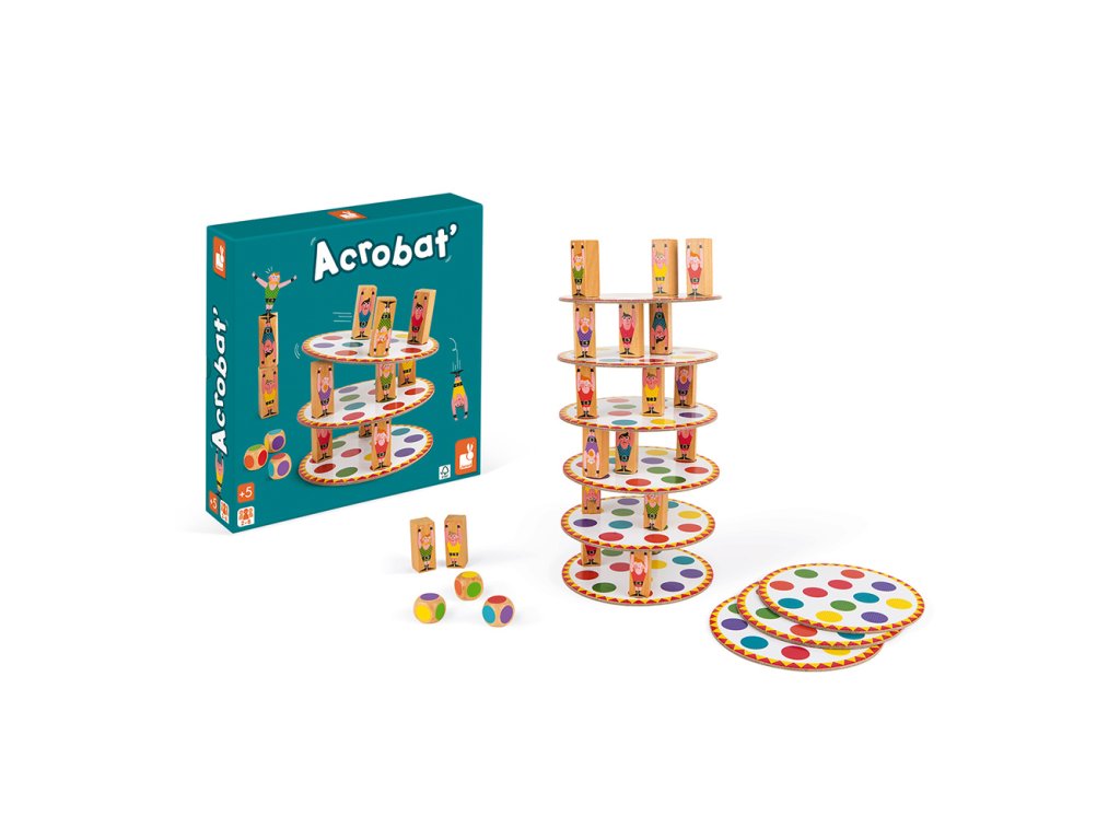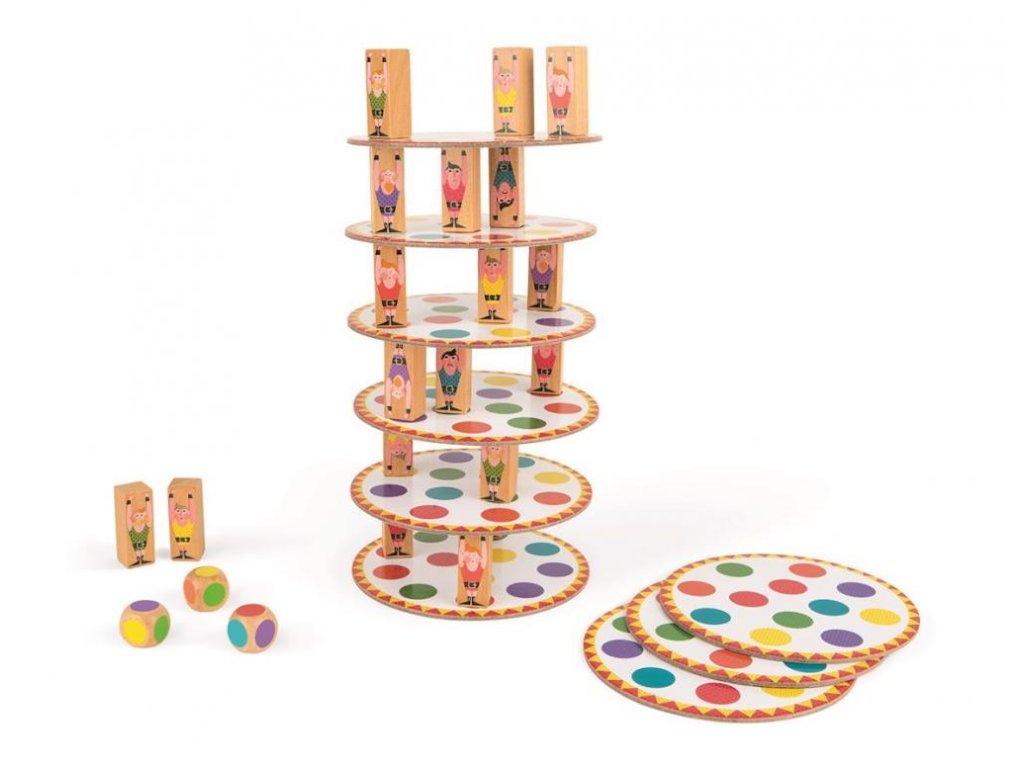 Hra je výborná pre všetkých, ktorí chcú potrénovať svoje strategické myslenie, motorické schopnosti a najmä sústredenosť Hádžte kocky a strategicky umiestnite svojich akrobatov tak, aby ste vytvorili čo najvyššiu vežu. Prvá osoba, ktorá zrazí vežu prehráva!