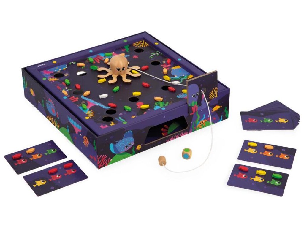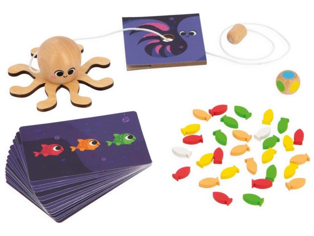 Zbierajte ryby zobrazené na svojich kartách misií potiahnutím za šnúrku! Šnúrka pohne chobotnicou, vďaka čomu ryba padne do dier...