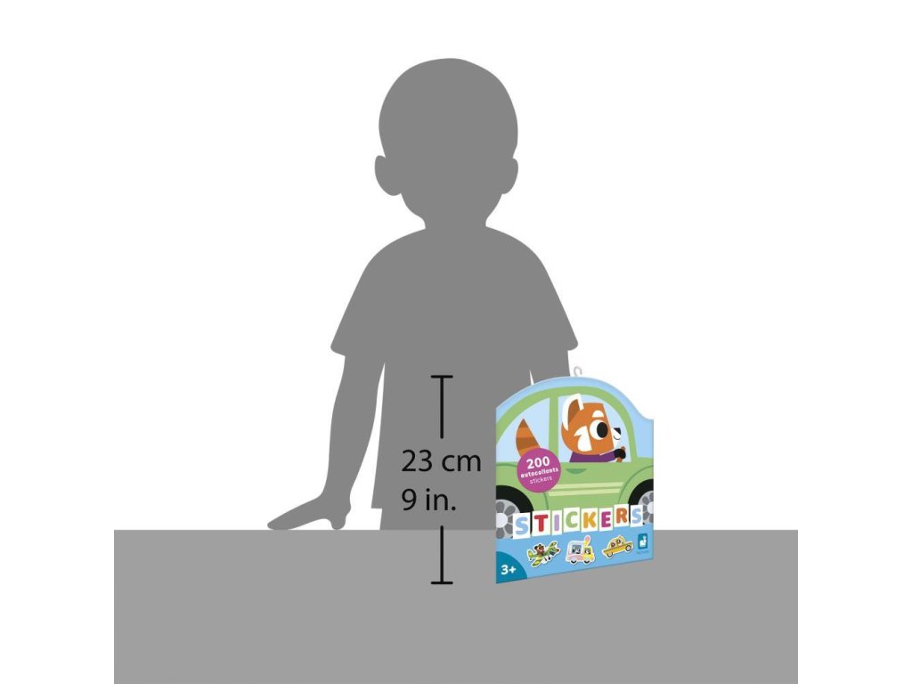 Sada nálepiek Vozidlá od francúzskej značky JANOD obsahuje 200 opakovane použiteľných nálepiek rozmiestnených na 6 hárkoch (každý 17 x 20 cm). Nálepky sú vhodné pre deti od 3 rokov – majú ideálnu veľkosť pre malé ručičky.