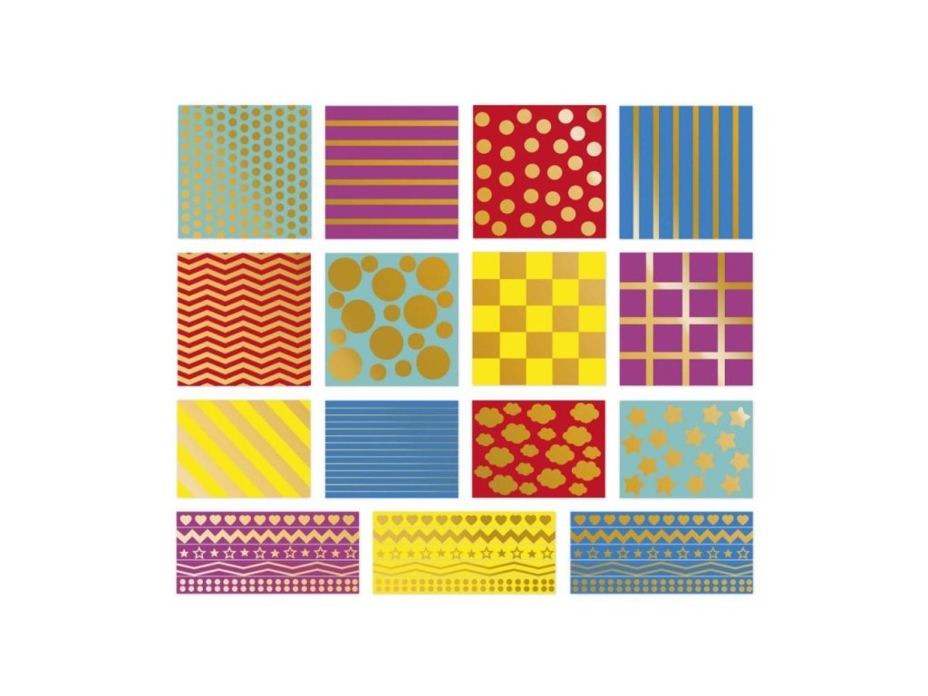 Nálepky sa dodávajú v niekoľkých rôznych geometrických tvaroch a rôznych farbách. Polovica z nich má lesklý, kovový povrch, ktorý im dodáva jedinečné čaro. Sady nálepiek JANOD sú bohatou kategóriou produktov, ktoré podnecujú kreatívnu hru a podporujú rozvoj manuálnych zručností u detí všetkých vekových kategórií.