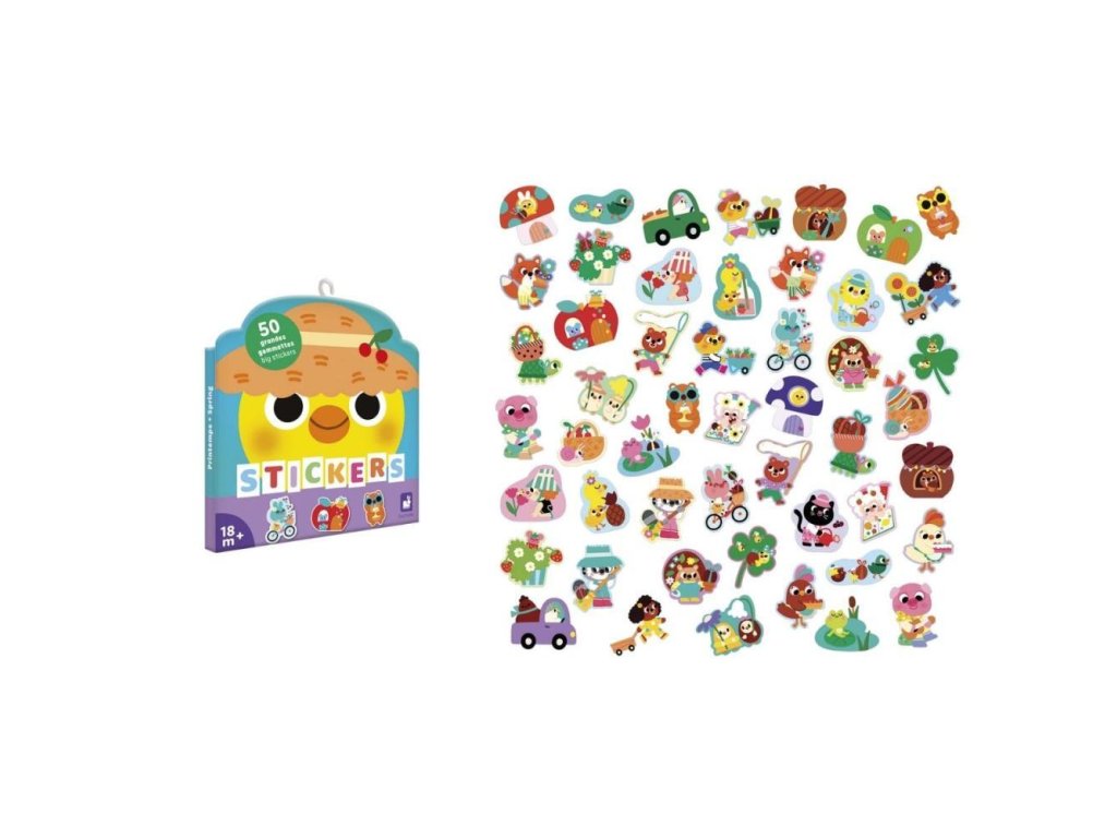 Súprava samolepiek obsahuje 50 ks veľkých, po obryse vyrezaných opakovane použiteľných samolepiek. Samolepky sú vhodné pre deti už od 18 mesiacov - majú optimálnu pre malé ručičky veľkosť (cca. 7 x 8 cm každá) a zárez na spodnej strane pre ľahšie odlepenie.