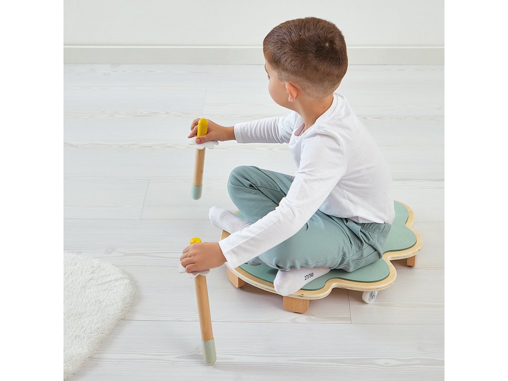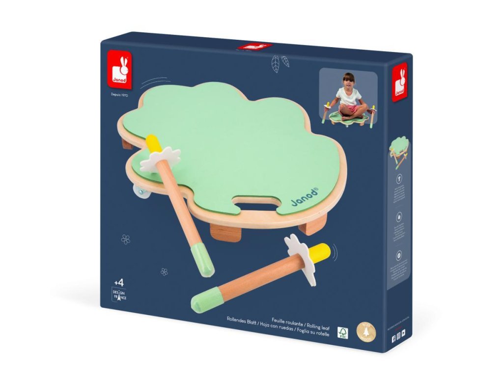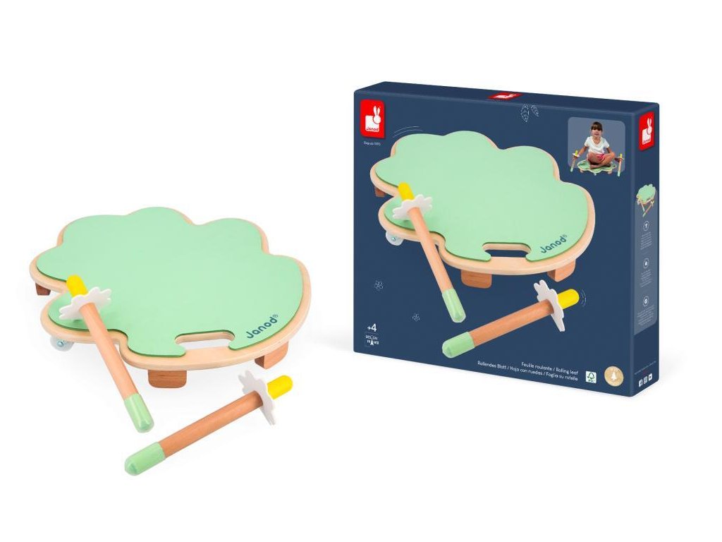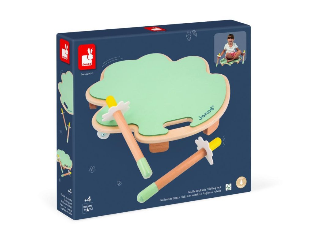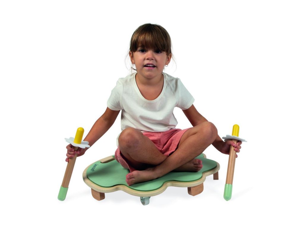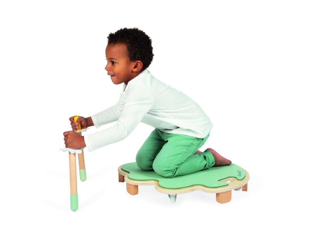 Bonusom je, že list je pokrytý penou EVA pre väčšie pohodlie. A aby bol pohyb ešte jednoduchší, súčasťou balenia sú 2 drevené palice v tvare kvetu. A to nie je všetko... Na konci paličiek v tvare kvetov, je kúsok silikónu, čo ich robí protišmykovými. Táto doska s kolieskami s čistým a jednoduchým dizajnom je ideálnou hračkou pre vaše dieťa na bezpečné rozvíjanie hrubej motoriky. Hračka na rozvoj hrubej motoriky je vyrobená z dreva FSC™.