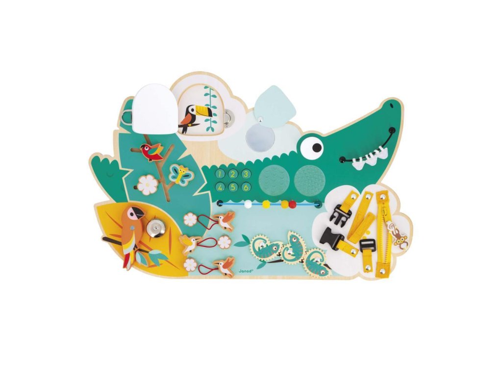 Janod Tropik Drevená motorická doska s aktivitami Krokodíl