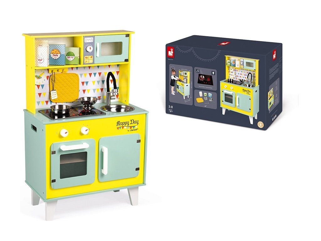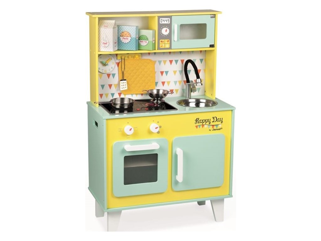 Janod Veľká drevená kuchynka Happy Day žltá zelená s príslušenstvom