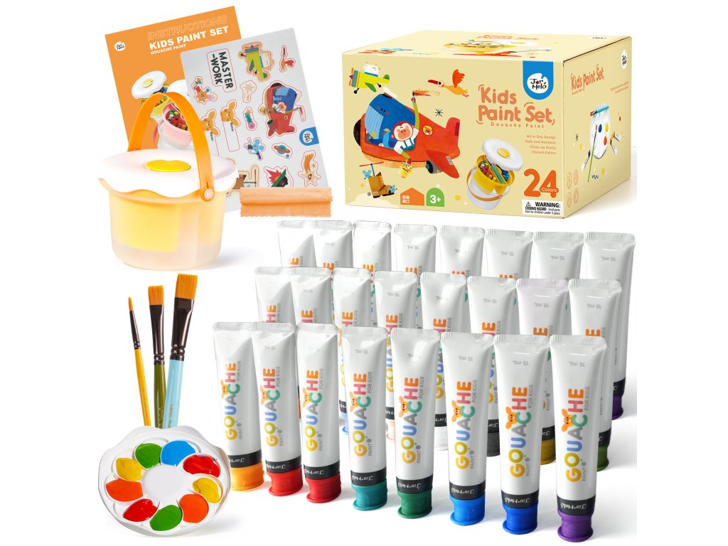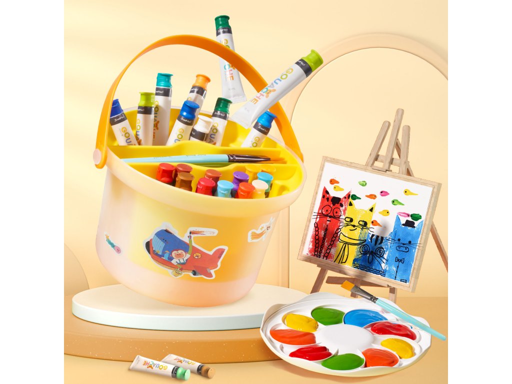 Kreatívna sada Maxi Gvašové farby Farby, štetce a poriadok: umenie bez stresu Predstav si vedierko, ktoré ukrýva celú dúhu, tri štetce a kopec detskej fantázie. Jarmelo gvašové farby nie sú len o kreslení – sú o príbehoch, ktoré vznikajú z každého ťahu štetca. Ideálne na dni, keď to chce farby, nápad a chvíľku ticha (pre deti aj rodičov).Všetko, čo potrebuje malý tvorca pod jedným vrchnákom 24 žiarivých, umývateľných gvaš farieb v oddelených kelímkochPaleta na farby a vrchnák na vedierko v jednom – menej neporiadku, viac pohody3 štetce rôznych veľkostí – na detaily aj odvážne ťahyVedierko s oddelenými priehradkami - skvelé ako úložný systém1 hárok s nálepkamiHandričkaNetoxické a bezpečné zloženie, vhodné pre deti od 3 rokovVšetko v jednom balení – ideálne aj ako kreatívny darček, prenosné a pripravené na cestu