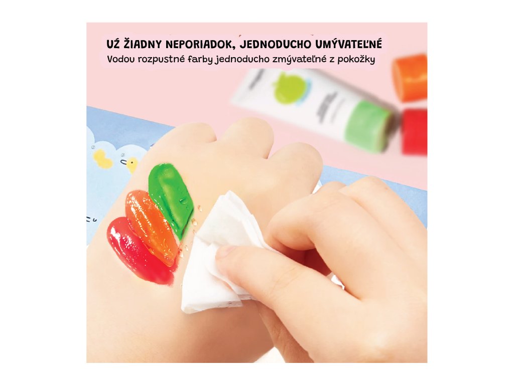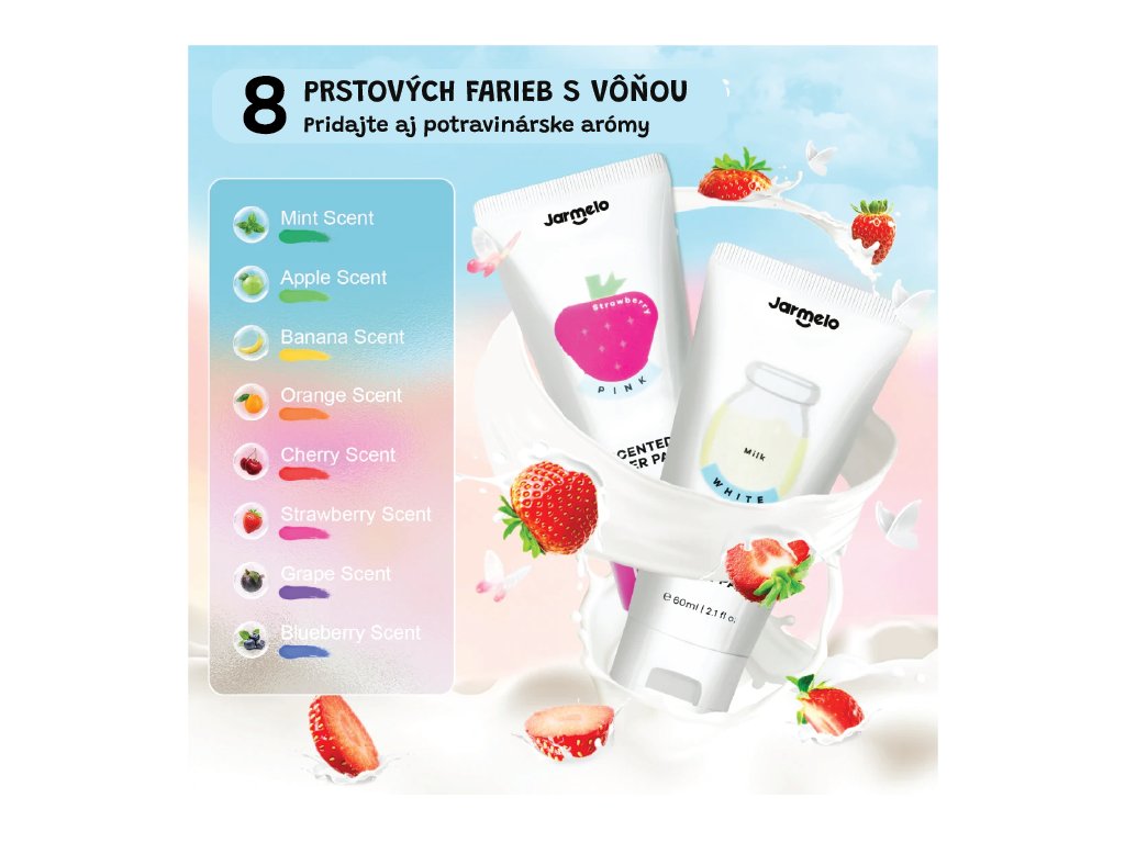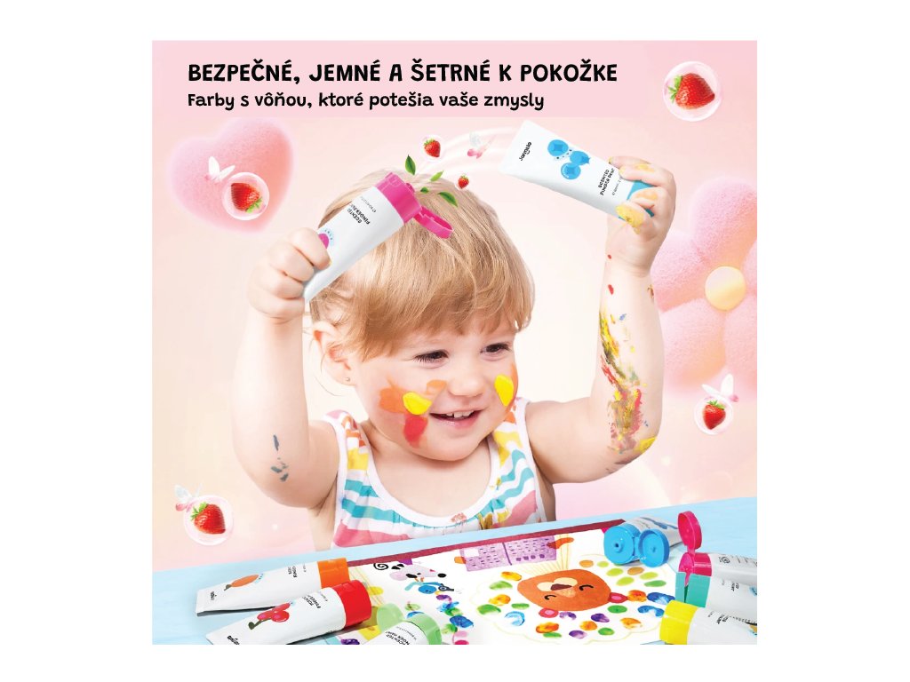 Prstové farby s vôňou 8 ks Multizmyslové maľovanie – farby aj vôňa v jednom Tieto prstové farby v tubách spájajú kreatívny zážitok s vôňami, ktoré prebúdzajú všetky zmysly. Jednoducho sa umývajú, podporujú jemnú motoriku a skutočne zabávajú pri tvorení bez neporiadku.Prečo si tieto farby deti zamilujú 8 umývateľných farieb + príjemné vône (napr. čerešňa, banán, jahoda, hrozno, pomaranč...) pre multizmyslovú hruNetoxické, bezpečné pre deti od 2 rokov Krémová textúra vhodná na maľovanie prstami i štetcom – výborná pre rozvoj kreativity a motorikyRýchle čistenie – farby zmiznú z kože i oblečenia len s vodou a jemným čistenímSkvelé darčekové balenie – farebná sada v tubách, pripravená pre malých umelcovVhodné na doma, do škôlky alebo ako cestovné kreatívne riešenie