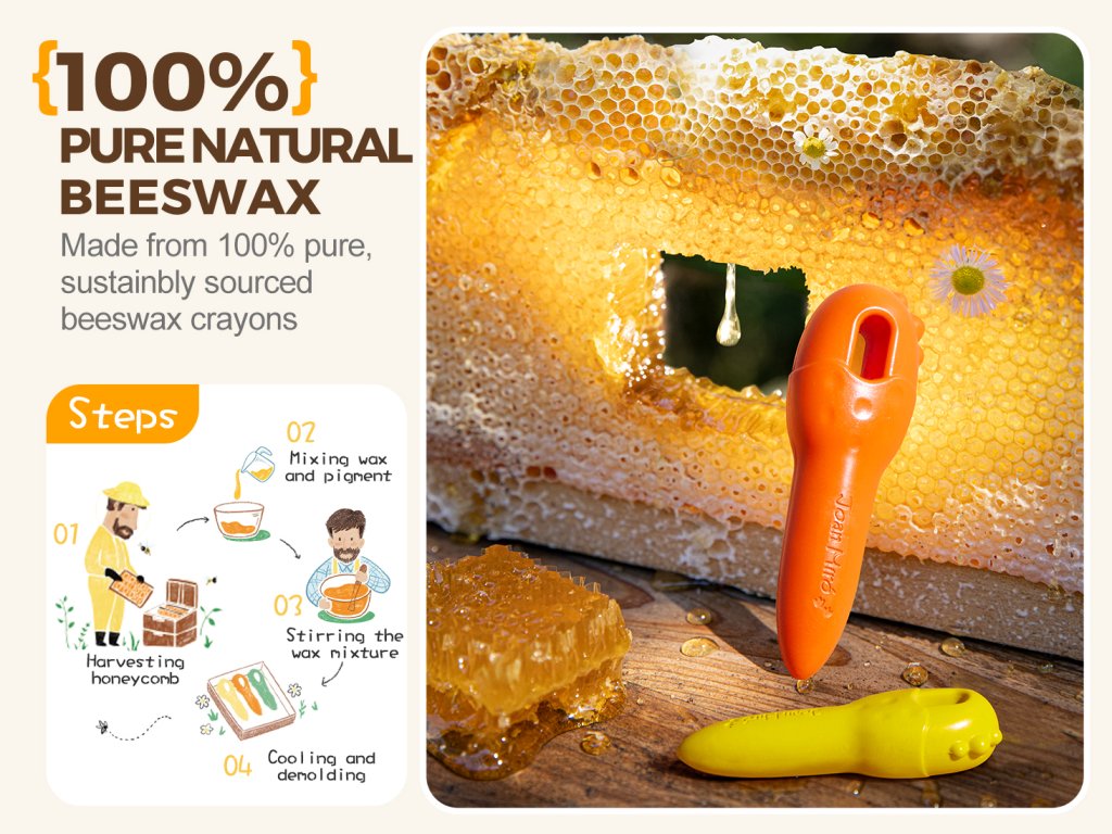 Prvé voskovky z včelieho vosku 12 ks Prírodné voskovky, ktoré milujú deti aj rodičia Jarmelo voskovky z včelieho vosku sú stvorené pre malých umelcov s veľkou fantáziou. Bezpečné, nelámavé a voňavé – kreslia jemne a ľahko sa držia aj v detských ručičkách. Hravý tvar, pestré farby a 100 % prírodné zloženie robia z tvorenia čistú radosť.Prečo si ich vaše dieťa zamiluje? Vyrobené zo 100 % včelieho vosku a potravinárskych pigmentovJemné, ľahko umývateľné z pokožky aj oblečeniaErgonomický tvar vhodný pre deti od 12 mesiacovBezpečné, netoxické, s certifikáciami Balené v krásnej pevnej krabičke – ideálne aj ako darček