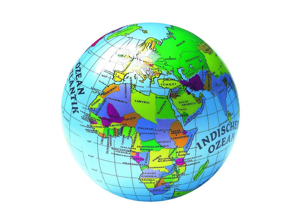 Kvalitná lopta z PVC s motívom Glóbusu s priemerom 230 mm.