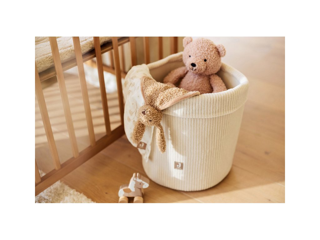 Košík z príjemného rebrovaného materiálu využijete na prehľadné uloženie všetkého, čo potrebujete mať po ruke pri každodennej starostlivosti o vaše bábätko alebo na rýchle upratanie drobných hračiek. Košík bude zároveň krásnym doplnkom v detskej izbe.