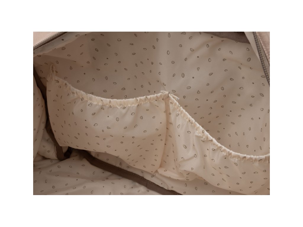 Prebaľovacia taška Jollein je dokonalou kombináciou elegancie a praktickosti na prechádzky aj výlety s vašim bábätkom. Je vyrobená z odolného textilného materiálu s embosovaným vzorom, ktorý prispieva k jej luxusnému vzhľadu. Vnútri nájdete niekoľko prehľadne rozdelených vreciek a priehradiek, ktoré vám uľahčia organizáciu plienok, fľaštičiek a ďalších nevyhnutností. Taška je vybavená úchytmi na pripevnenie na kočík, nastaviteľným ramenným popruhom na nosenie cez rameno aj držadlami na nosenie v ruke.