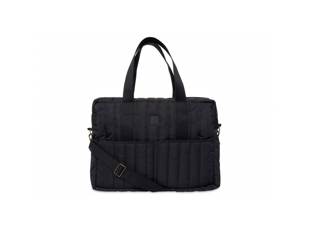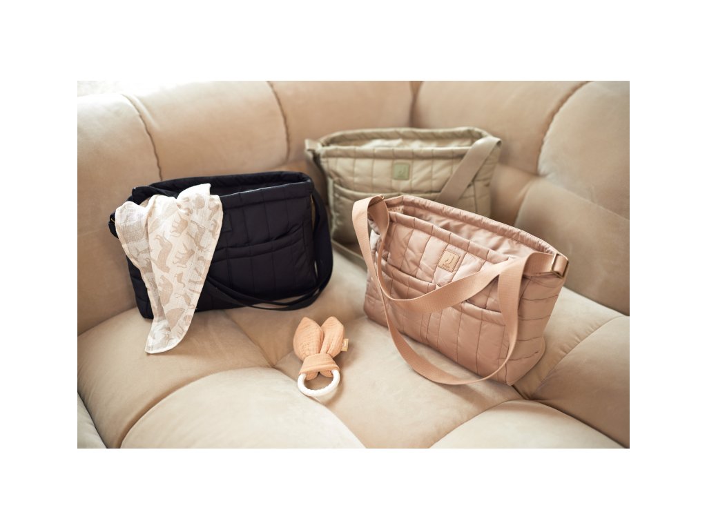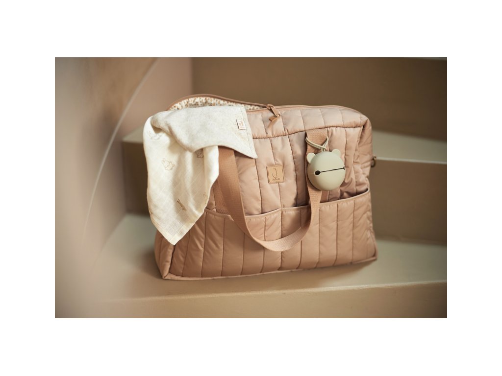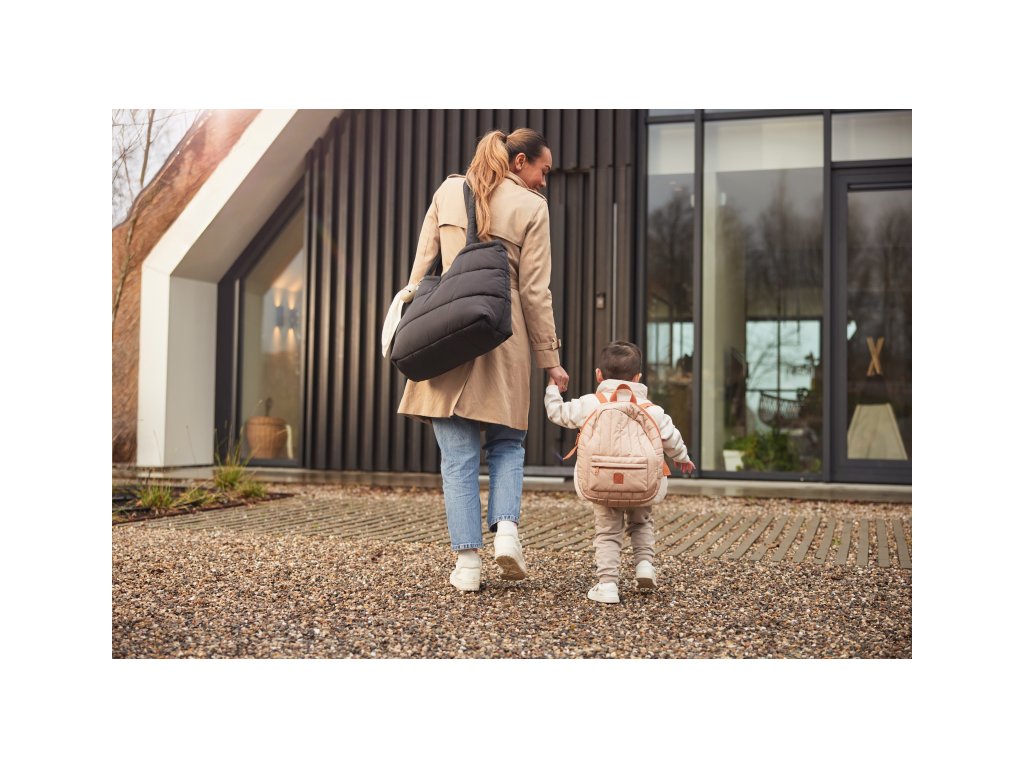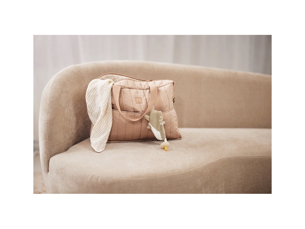 Prebaľovacia taška z príjemného prešívaného materiálu s výplňou s originálnou bodkovanou podšívkou ponúka množstvo vnútorných aj vonkajších vreciek pre prehľadné usporiadanie všetkého potrebného na prechádzkach a výletoch s vašim dieťaťom. Súčasťou tašky je aj praktická prebaľovacia podložka. Ramenný popruh aj držadlá umožňujú nosenie cez rameno, v ruke aj zavesenie na rukoväť kočíka. Taška sa uzatvára na zips.